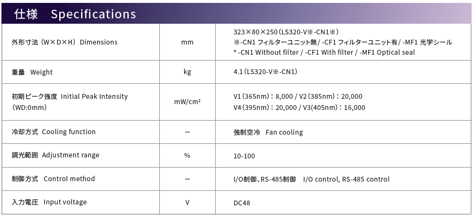 LS Series – Super high-intensity UV-LED line lamps, ideal for conveyor-based systems with powerful, uniform, and stable illumination across multiple irradiation widths.