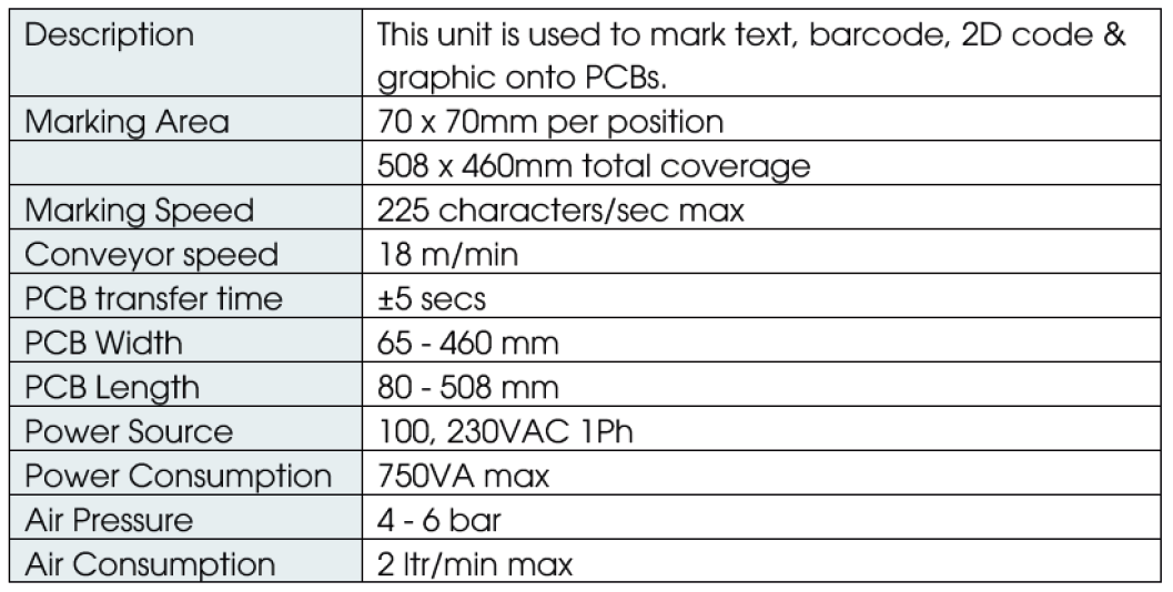 Thiết bị này được sử dụng để đánh dấu văn bản, mã vạch, mã 2D và hình ảnh lên bảng mạch in (PCB).