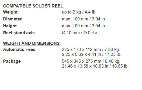 • Trạm có thể chứa cuộn dây hàn lên đến 2 kg / 4.40 lb.